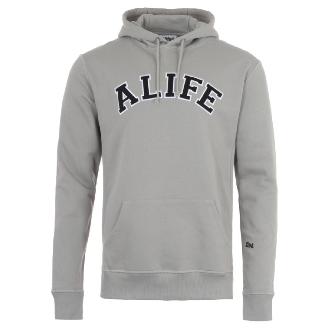 Alife Collegiate Grey Hoodie. Alife Collegiate Grey Hoodie. 100% Cotton, Adjustable Drawstring Hood. Kangaroo Pocket, Elasticated Cuffs and Hem. Regular Fit, Fits True To Size, Branding Across The Chest and On The Left Sleeve. Style: ALIFW20 29
