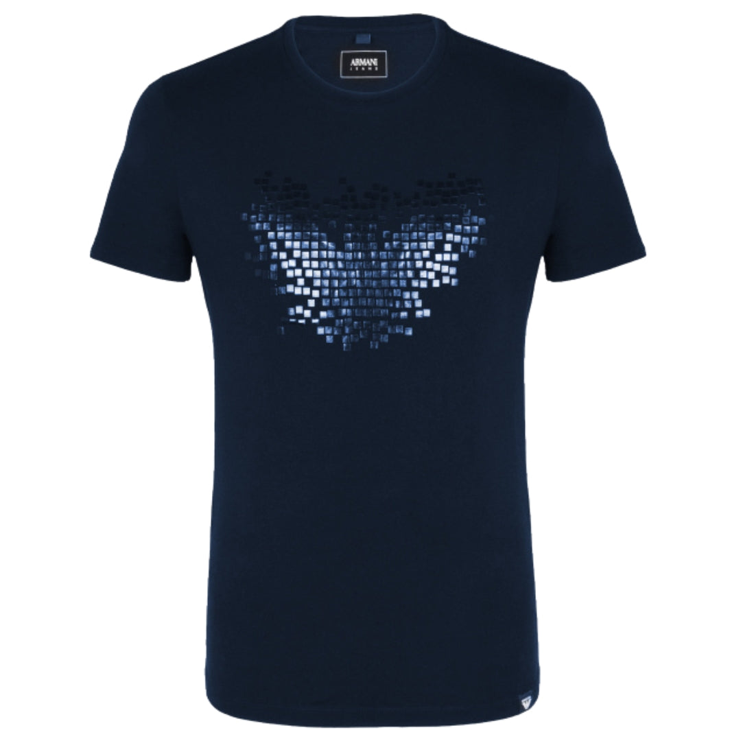 Short Sleeved Navy Blue Armani T-Shirt Crew Neck 100% Cotton Armani Jeans Collection By Giorgio Armani