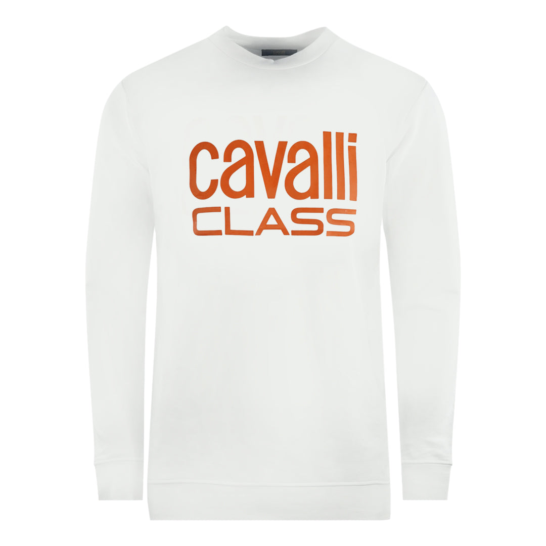 Cavalli Class Bold Brand Logo White Sweatshirt