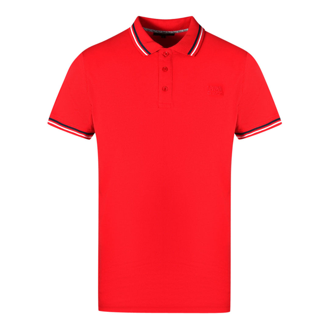 Cavalli Class Twinned Tipped Collar Red Polo Shirt