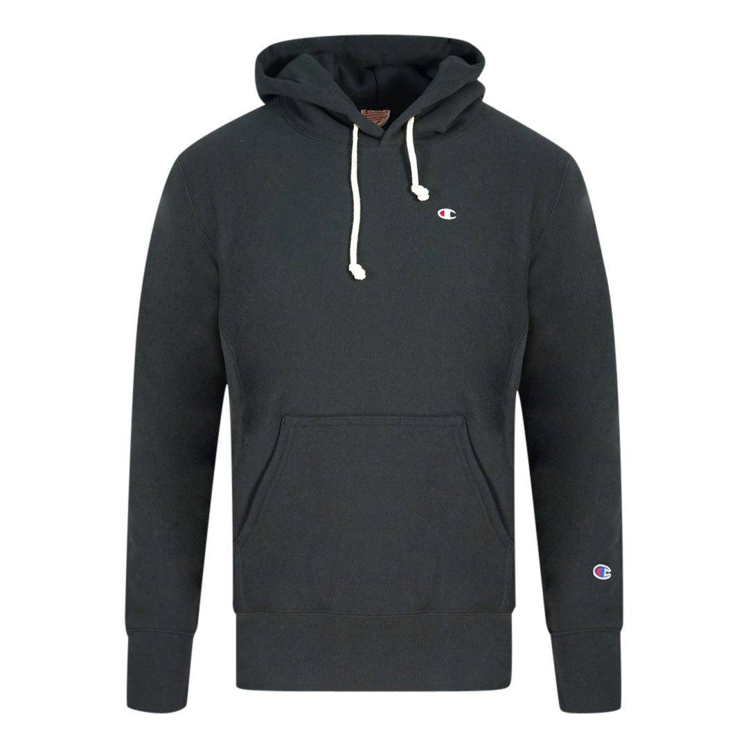 Champion Reverse Weave Small Classic Logo Black Hoodie. Champion Black Hoodie. Elasticated Sleeve Ends and Waist, Drawstring Hood. Front Pockets. 100% Cotton. Style Code: 214675 KK001
