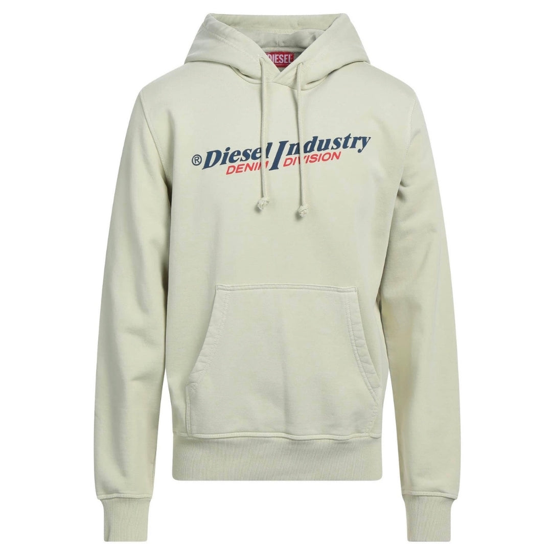 Diesel Industry S-Ginn-Hood-Ind Beige Hoodie. Wrap up in luxurious comfort with this Diesel beige hoodie. Cast in a sleek black hue, the hoodie features the iconic Diesel logo boldly displayed across the chest. Step into your style with confidence and ease, knowing you�re in a wardrobe staple from a brand that speaks for itself. Get ready for the ride of your life!. 100% Cotton, Large Kangaroo Pocket. Regular Slim Fit, Fits True To Size. Ribbed Sleeve and Waist Endings. Style: S-Ginn-Hood-Ind 7DV Sweatshirt