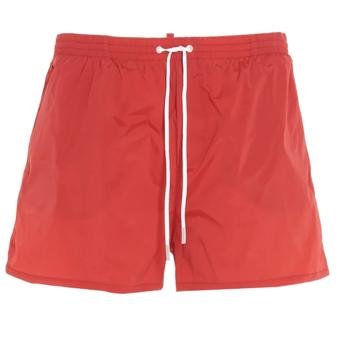 Dsquared2 Icon Logo Red Swim Shorts. D2 Red Swim Shorts. Elasticated Waistband, Drawstring Ties. 90% Polyamide, 10% Elastane. Icon Branding On Back Of Shorts. Product Code - D7B643470.61848