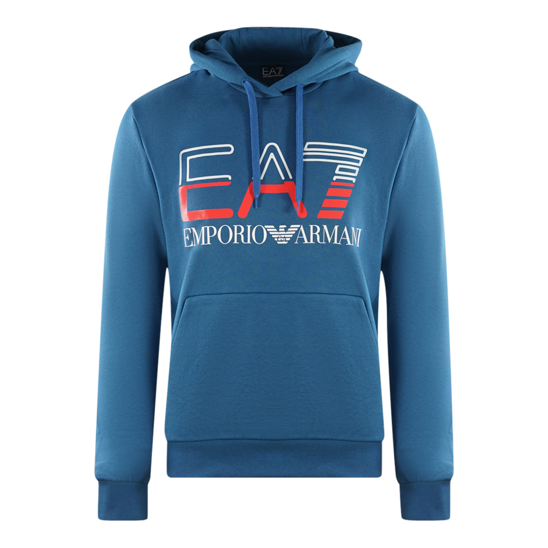 Ea7 Large Brand Logo Dark Blue Hoodie