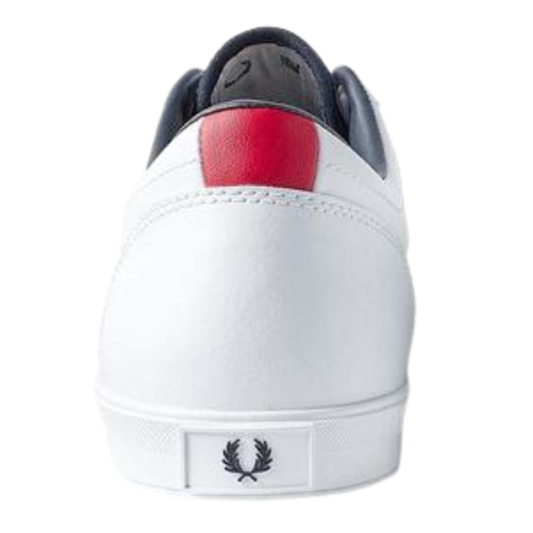 Fred Perry Baseline Perf Leather White Trainers. Fred Perry White Shoes. Branded Badge On Side Of Shoe. Branded Logo On Tounge, 100% Leather. Lace Fasten Trainers, Baseline Perf. Style: B7114 200