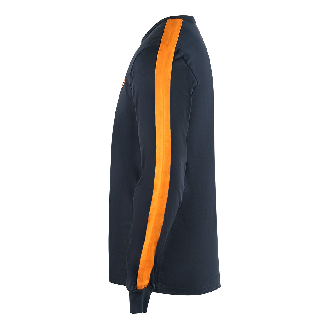 Fred Perry Botanical Dye Long Sleeve Navy Blue T-Shirt. his timeless Fred Perry T-shirt is an essential for every wardrobe. Crafted from durable, soft cotton, this piece features a chest logo design for a classic finish. Elevate your style with this timeless classic!. 100% Cotton, Taped Sleeves, Brand Logo On Chest, Long Sleeves, Crew Neck, Streetwear,. Regular fit, Fashion Fred Perry Navy Tee. Brand Logo On Chest, Orange Taped Sleevs. Style: M3828 H20