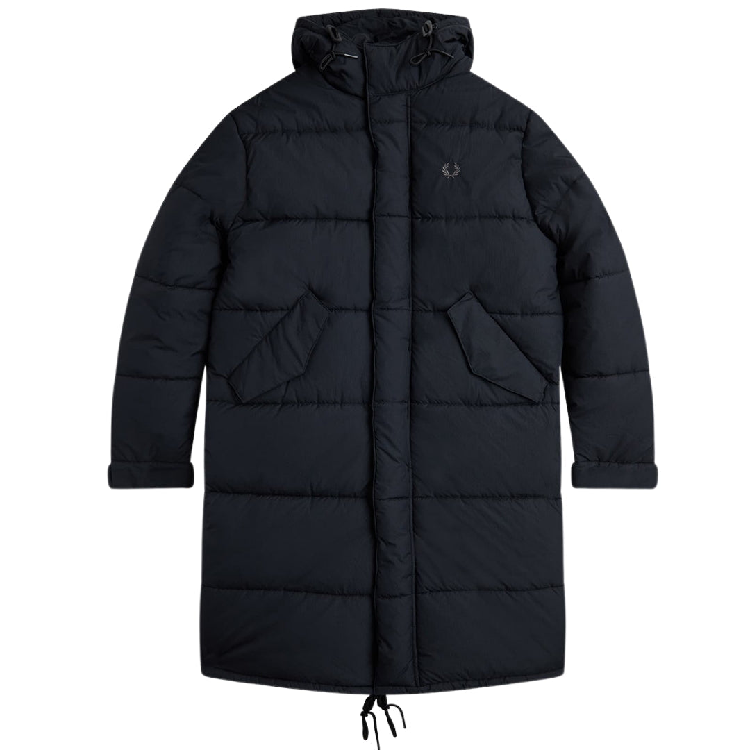 Stay warm and stylish in the Fred Perry Black Hooded Parka Jacket. Made with a classic parka design, this jacket is perfect for any outdoor adventure. Its hood provides extra protection from the elements, while the Black color adds a touch of sophistication. Don't let the cold weather stop you from exploring in style., Branded Badge On Left Chest, Hooded Jacket, Zip In Liner Parka, Black, Material: 100% Polyester, Lining: 100% Polyester, Filling: 100% Recycled Polyester, Central Zip Closure, 2 Button Closure Pockets. Regular Fit, Fits True To Size, Branded Badge Front Left Chest, Elasticated Sleve Endings, 2 Button Closure Pockets