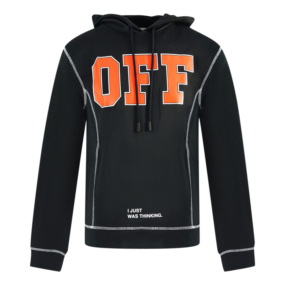Off-White Bold Logo Black Hoodie. Off-White Black Jumper. Off Logo. Elasticated Sleeve and Hem Endings. 100% Cotton. Style Code: OMBB021F17246044 1019