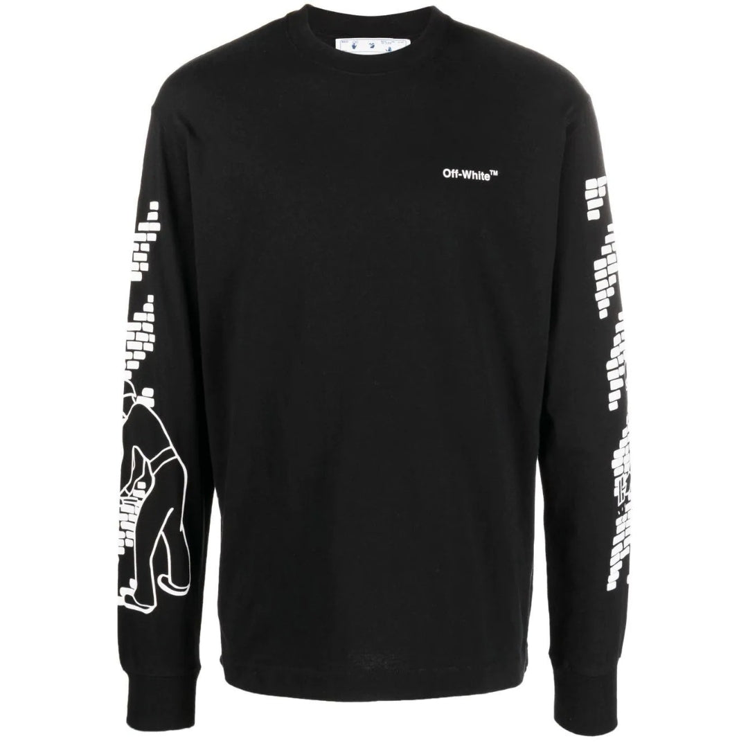 Off White Bricks Logo Long Sleeve Skate Fit Black T Shirt