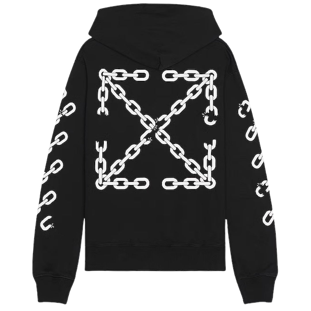 Off White Chain Arrow Design Slim Fit Black Hoodie