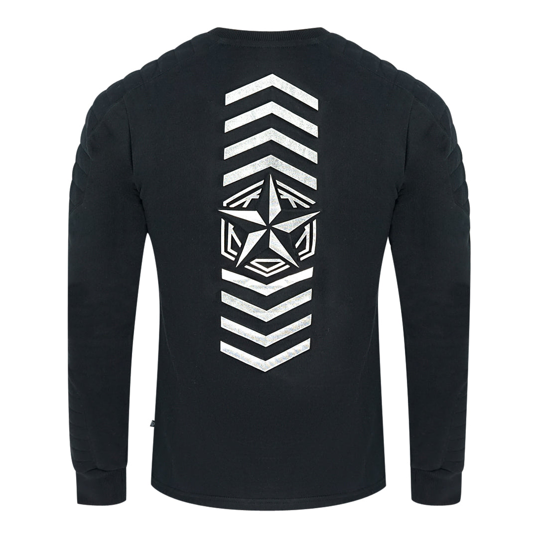 Philipp Plein HM332729 "Bat Drk" 0210 Jumper. Crew Neck Black Jumper. Elasticated Hem and Cuffs. Silver Batman Logo. Branding In Silver Across The Bottom. 3D Print On Back Of Jumper