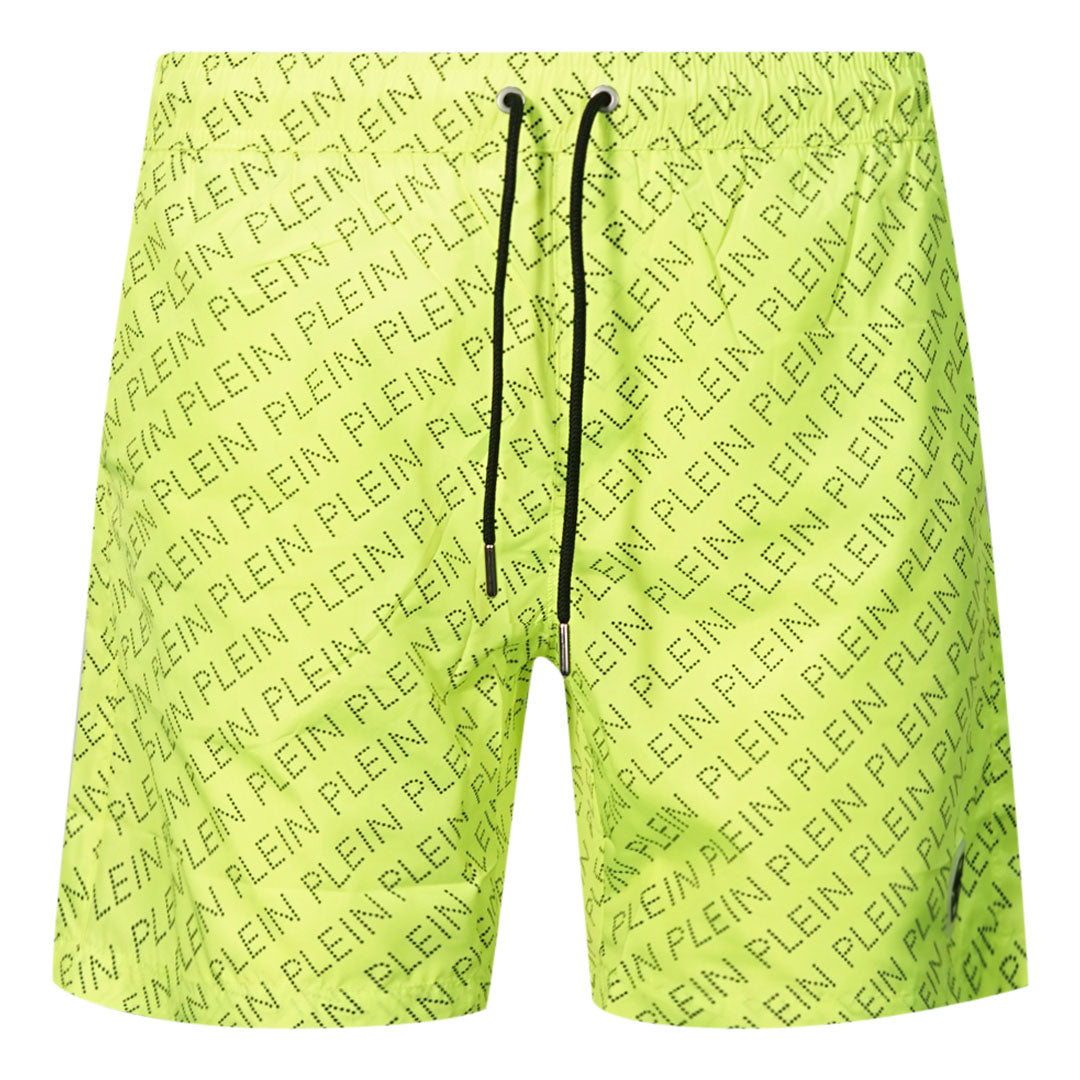 Philipp Plein Repetitive Logo Fluorescent Yellow Swim Shorts