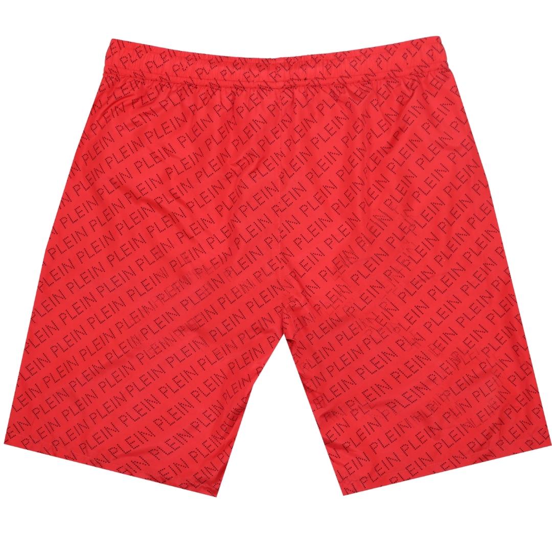Philipp Plein Repetitive Logo Long Red Swim Shorts