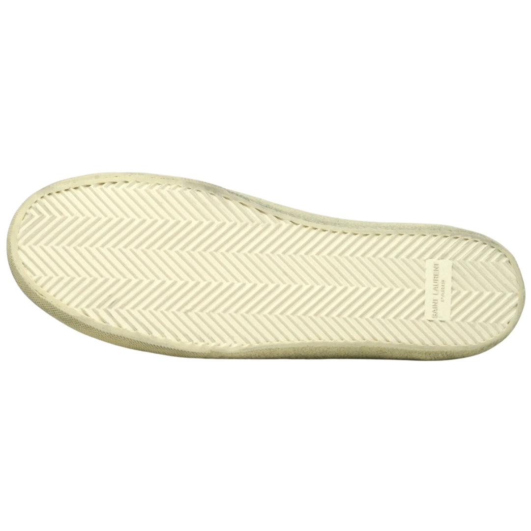 Saint Laurent White Sneaker. Step out in style with the Saint Laurent White Sneaker! This streetwear favorite features a modern and edgy look. Perfect for a night out or a casual day, you'll be in comfort and looking great. Make a statement and get the shoe now!. Lace Fasten. Rubber Sole. 100% Leather. Style Code: 458877 CN5T0 9227
